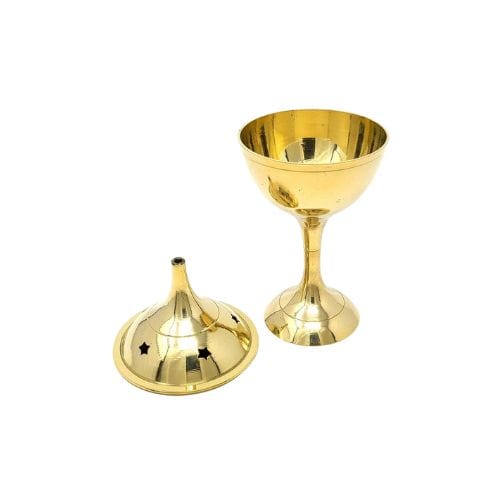 Enhance your rituals with our elegant 5-inch Brass Burner, designed for burning charcoal, cones, resins, and more. This brass burner features a beautifully crafted cutwork lid that allows smoke to escape gracefully, filling your space with aromatic tranquility.