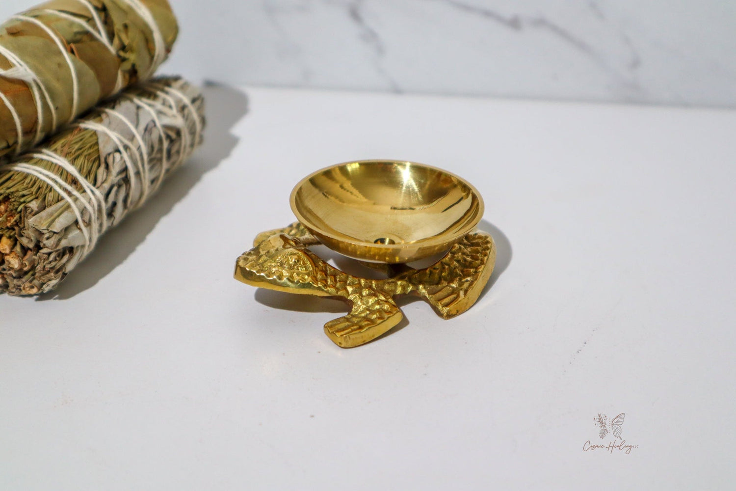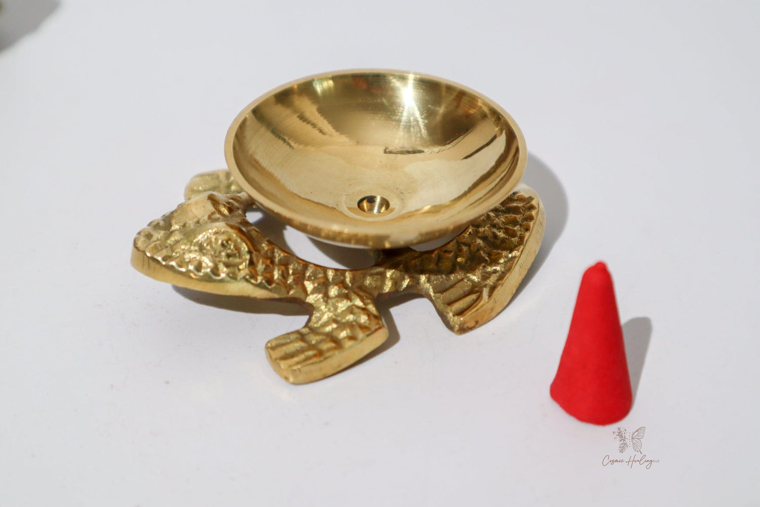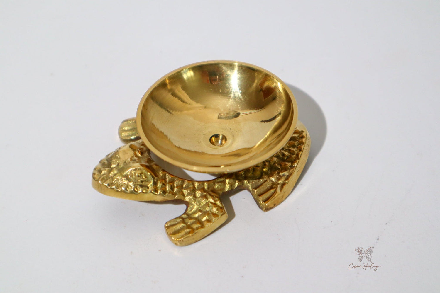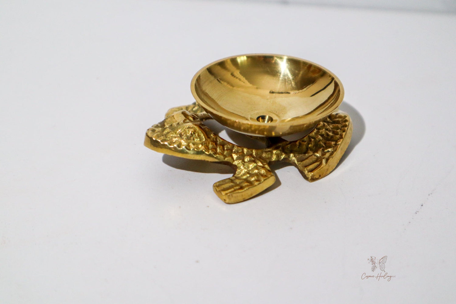 This golden frog cone incense burner is a unique way to burn your favorite cone incense and resins while incorporating spirit animal totems into your meditation rituals. A burner is an important accessory for any ceremonial use of incense. Burners are used for the safe and controlled burning of cone or stick incense. This brass frog burner is ideal for either cone.