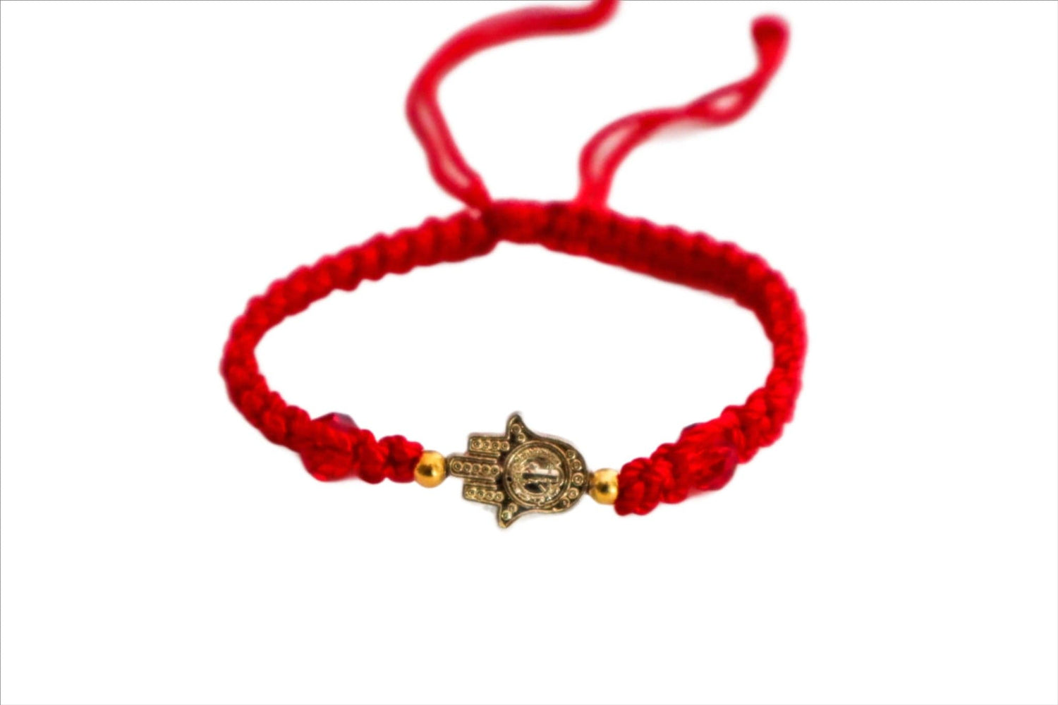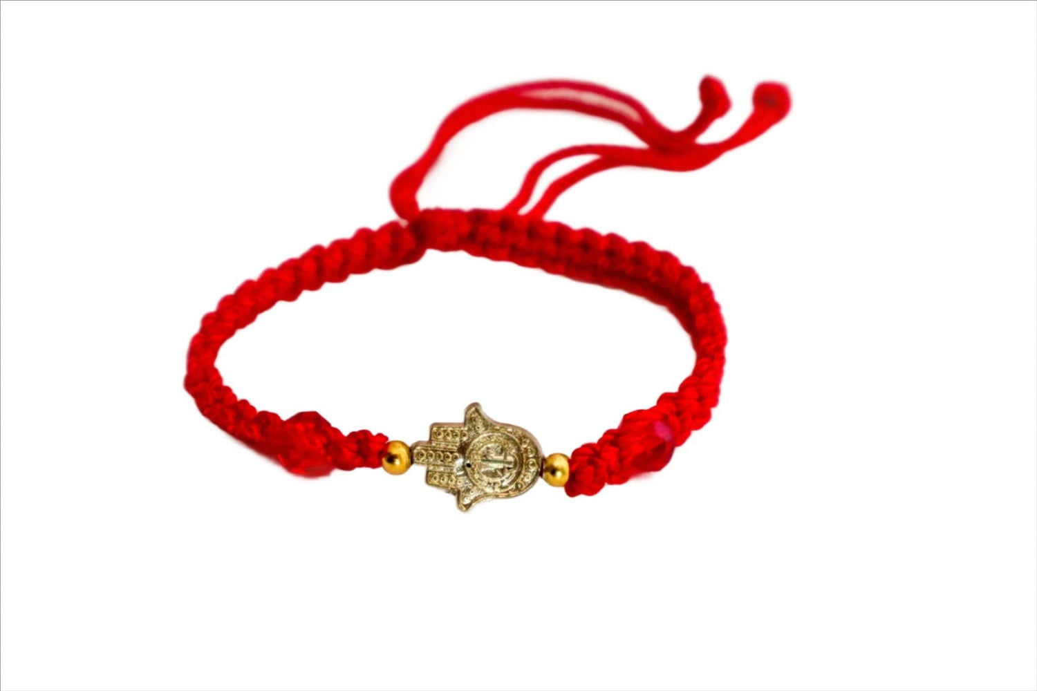 This bracelet is adjustable and can be tied to fit most wrist sizes. The weave of the red thread creates a beautiful pattern that will last for years with proper care.
