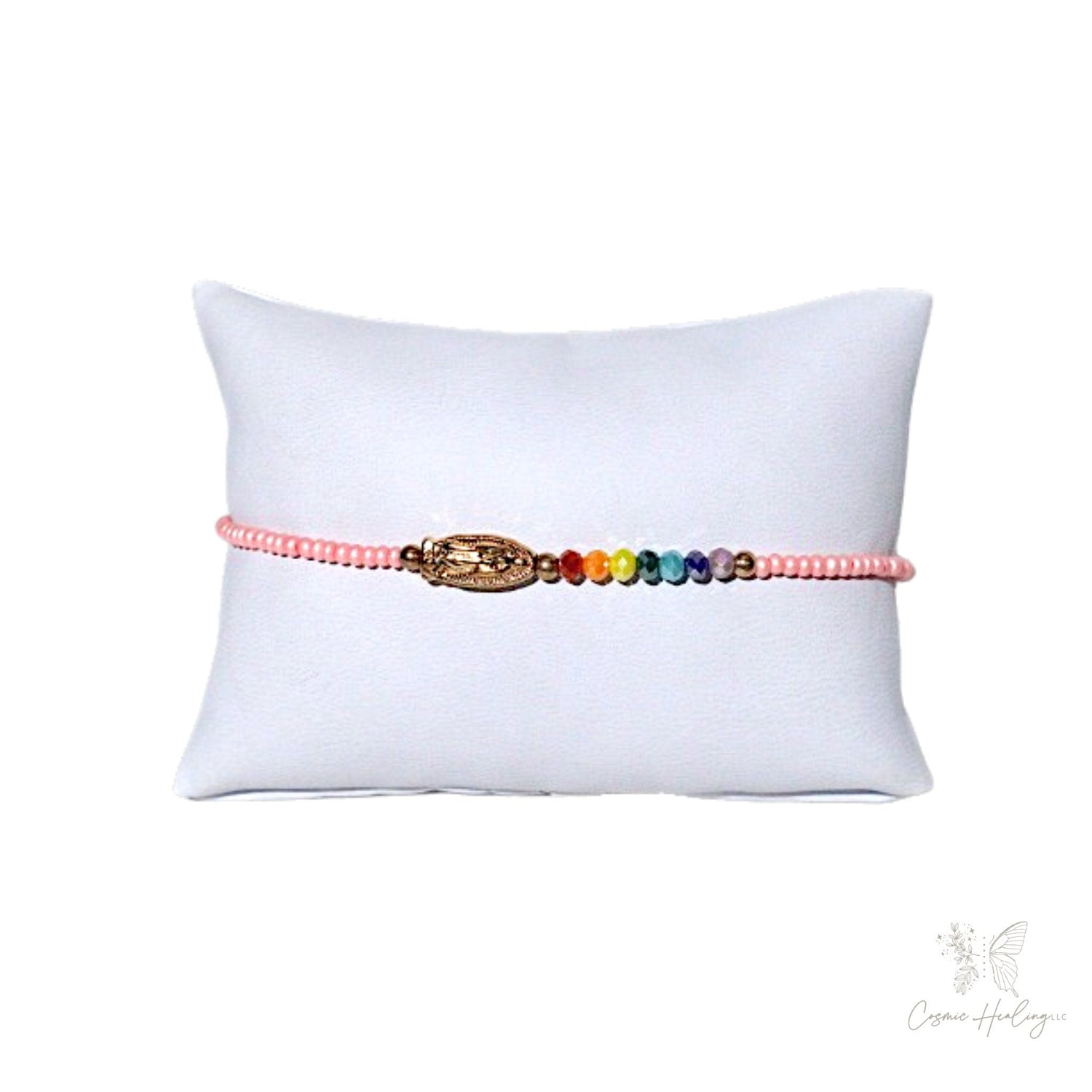 Virgen de Guadalupe Beaded Bracelet Dainty - Pink