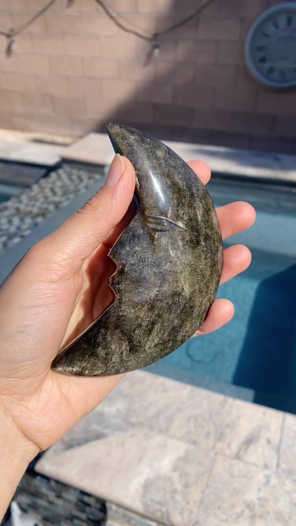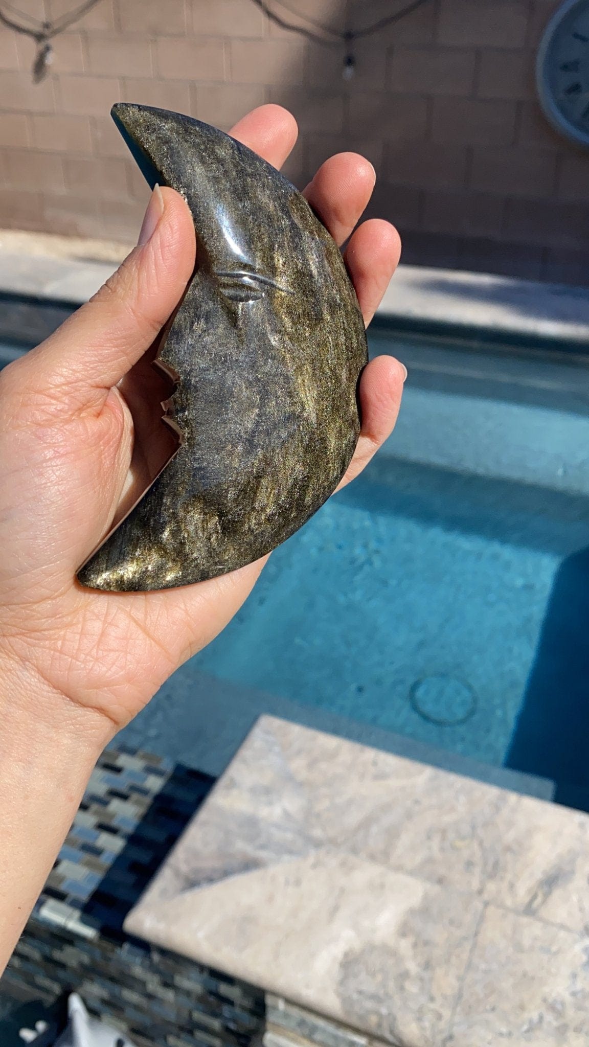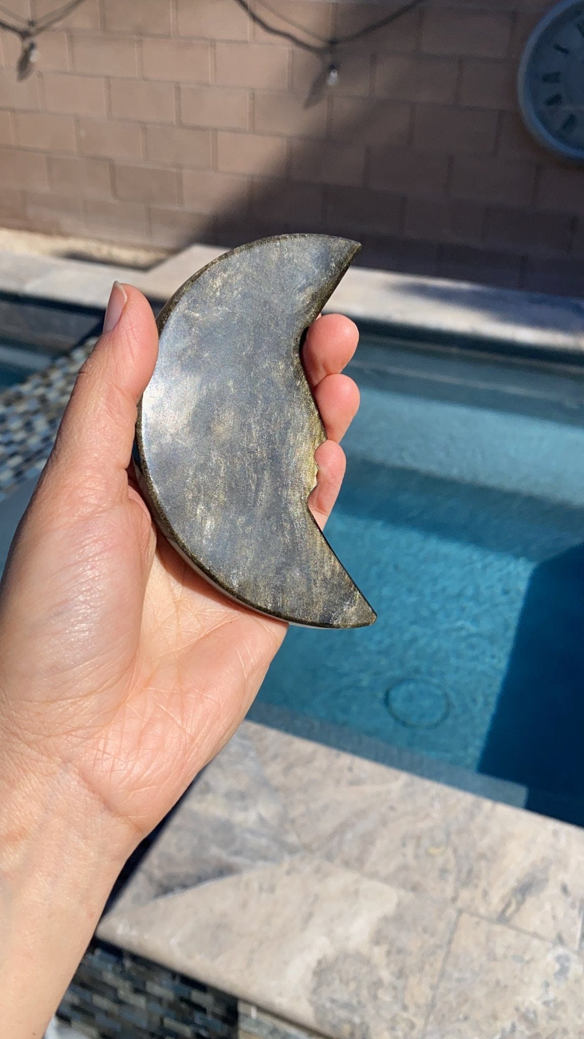 Gold Sheen Hand Carved Crescent Moon is backordered and will ship as soon as it is back in stock.