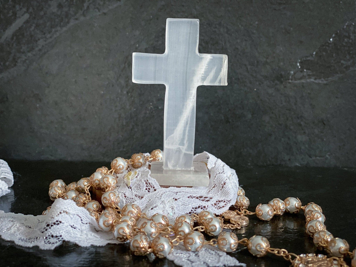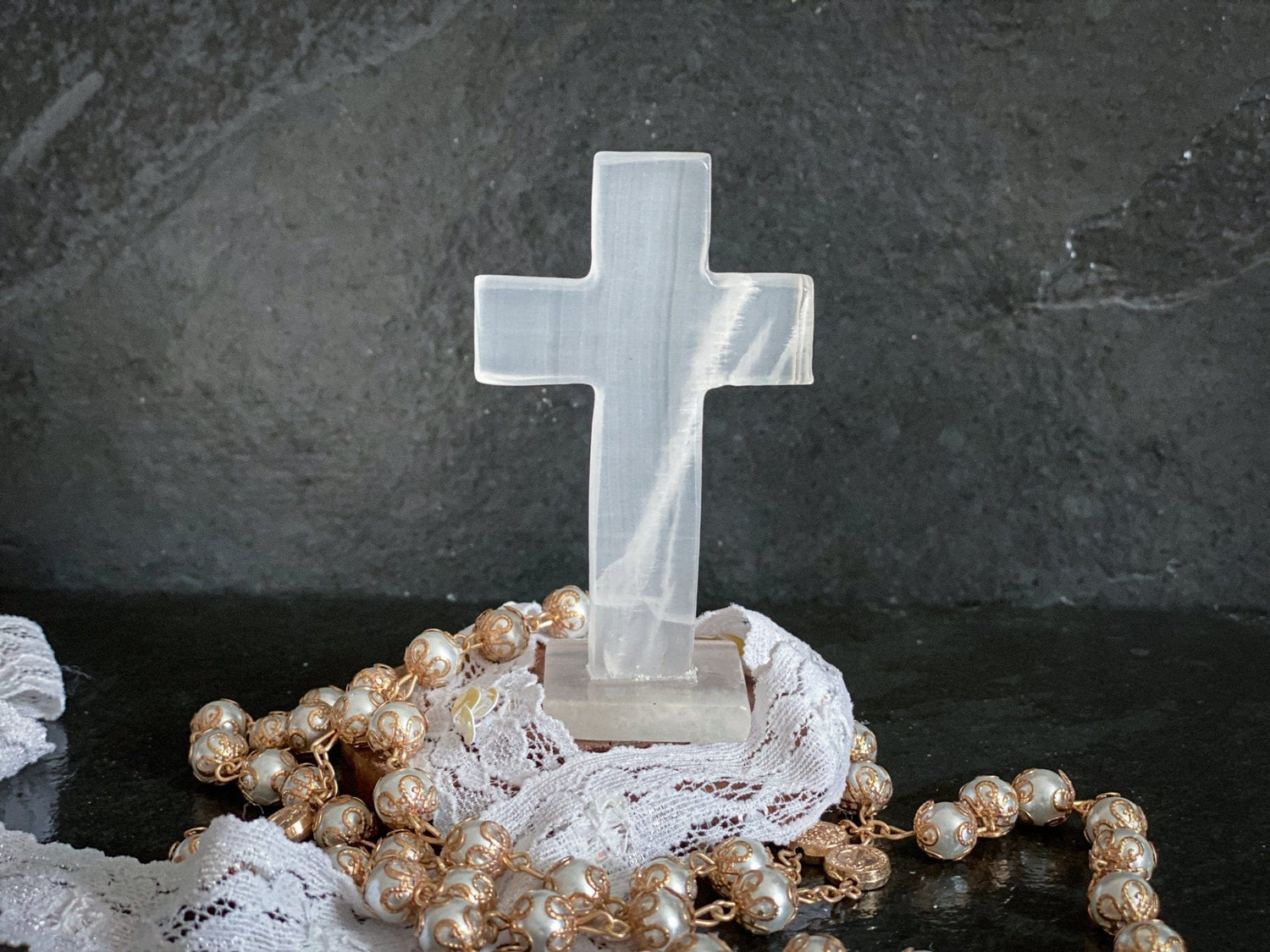 Clear Mexican Onyx Crystal 3" Cross with Base