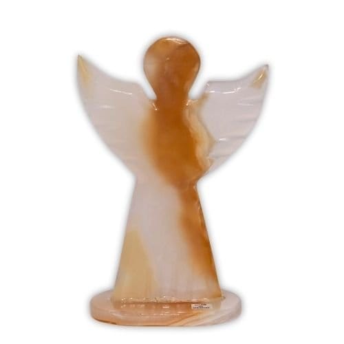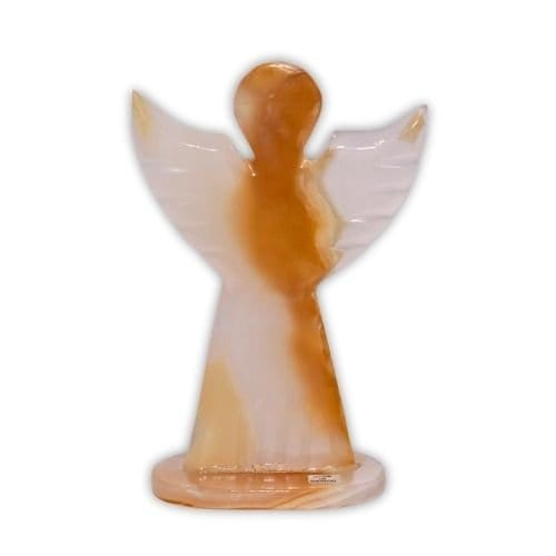 This natural White Onyx Angel is a delicate and blissful work of art that will surely delight. This unique piece of art was carved from a beautiful frosty Onyx gemstone.