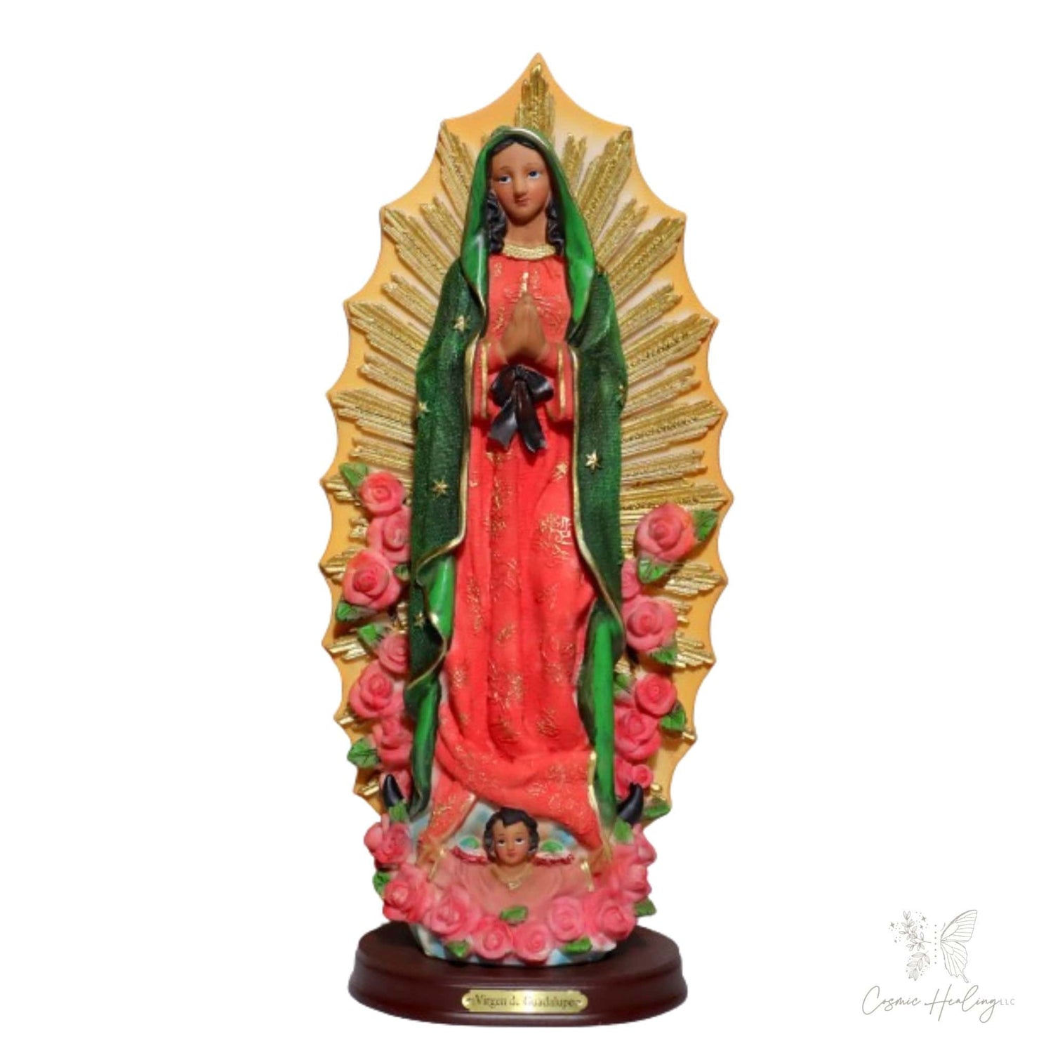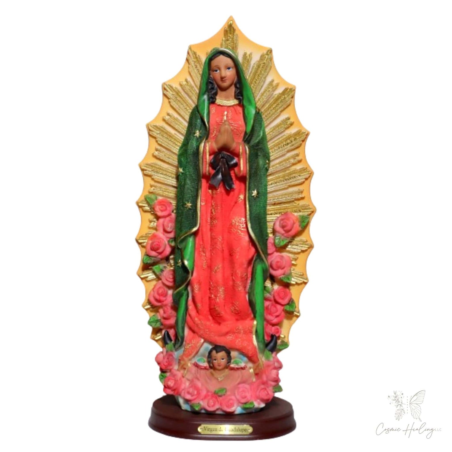 🏆 Elegant Gold Detailing – A gold plate at the base proudly displays the inscription "Virgen de Guadalupe", further honoring her spiritual presence.