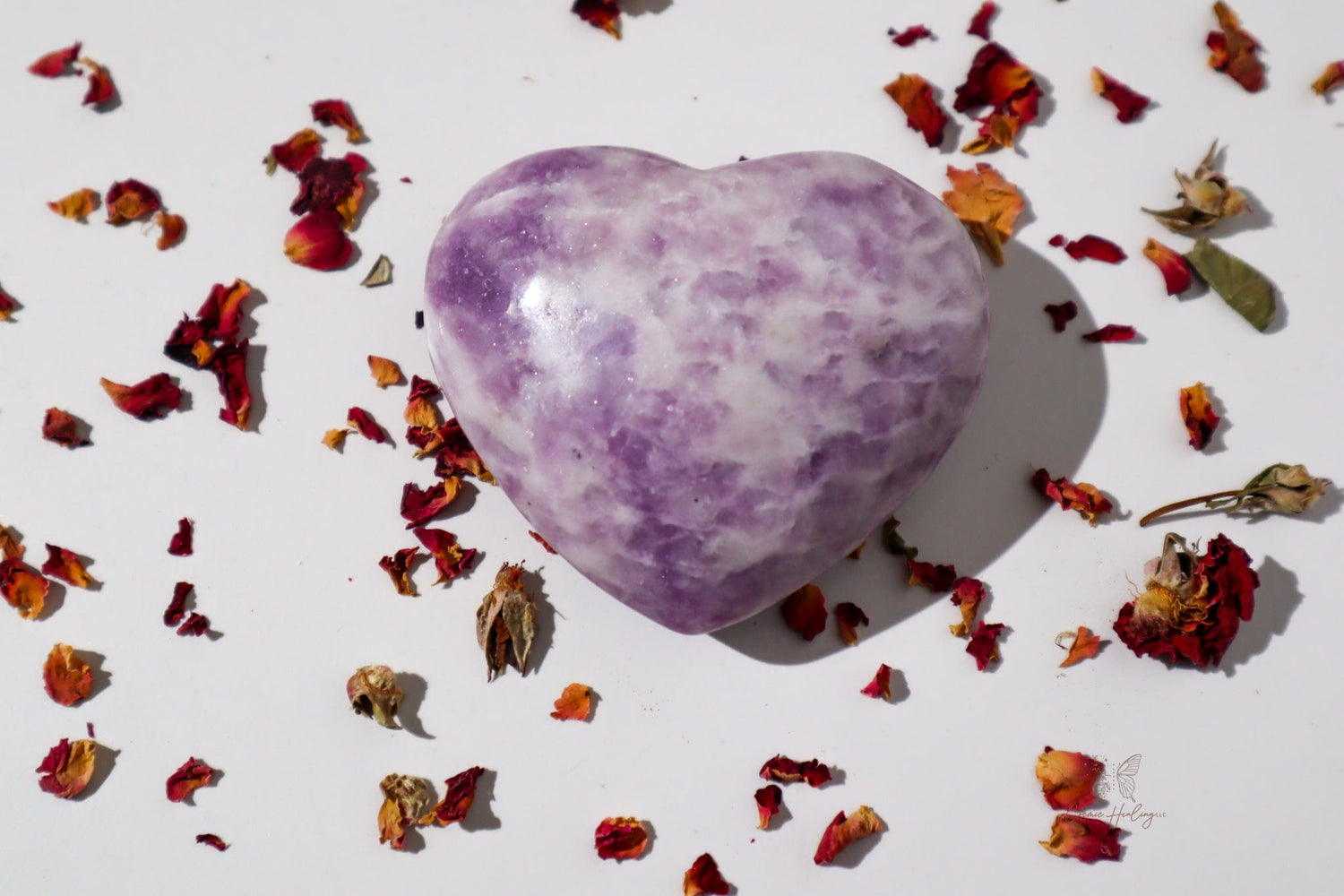 Deep Purple Lepidolite Heart With Mica Inclusions- LH1 is backordered and will ship as soon as it is back in stock.
