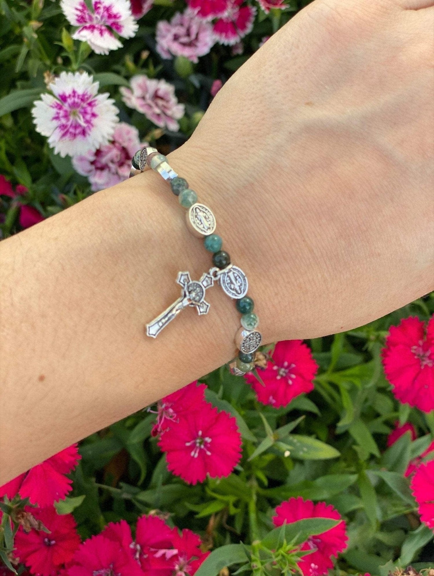 Whether you're looking to enhance your spiritual journey or find the perfect gift for a loved one, this bracelet serves as a meaningful reminder of faith and resilience. Embrace the power of Indian agate and the blessings of Saint Benedict with this elegant accessory that combines style with spiritual significance.