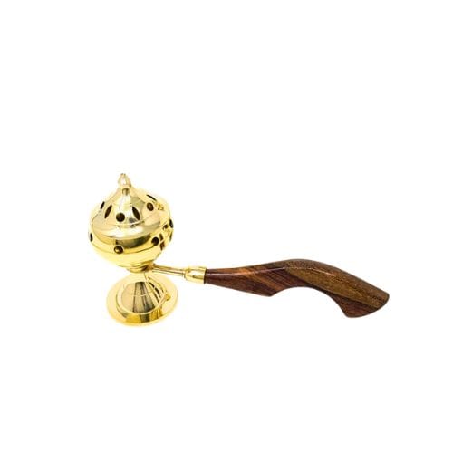 Quemador de Incienso de Latón con Mango de Madera – 5" H