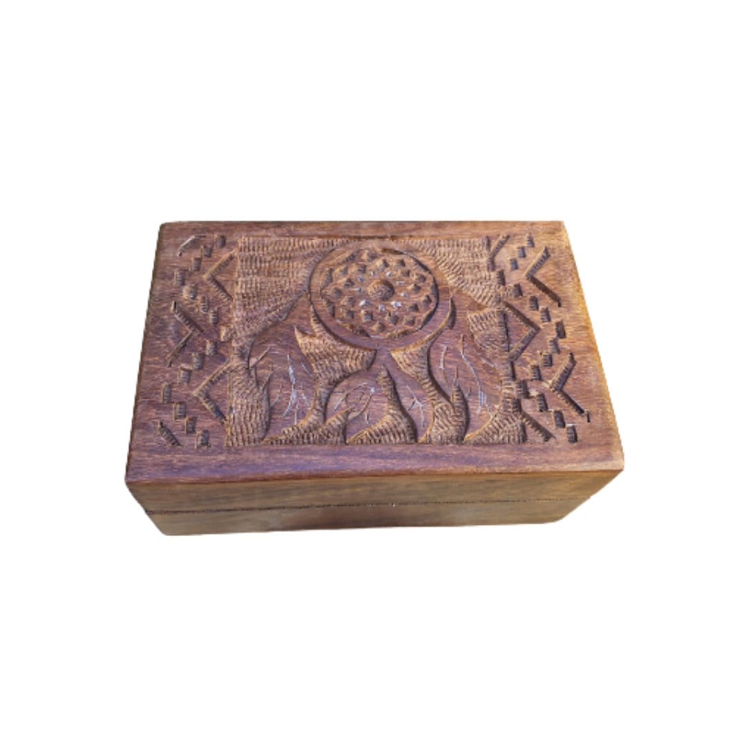 Dream Catcher design Wooden Storage Box handmade in India is the perfect companion for your precious tarot or oracle cards, dried herbs for smudging, trinkets, incense cones or oils!