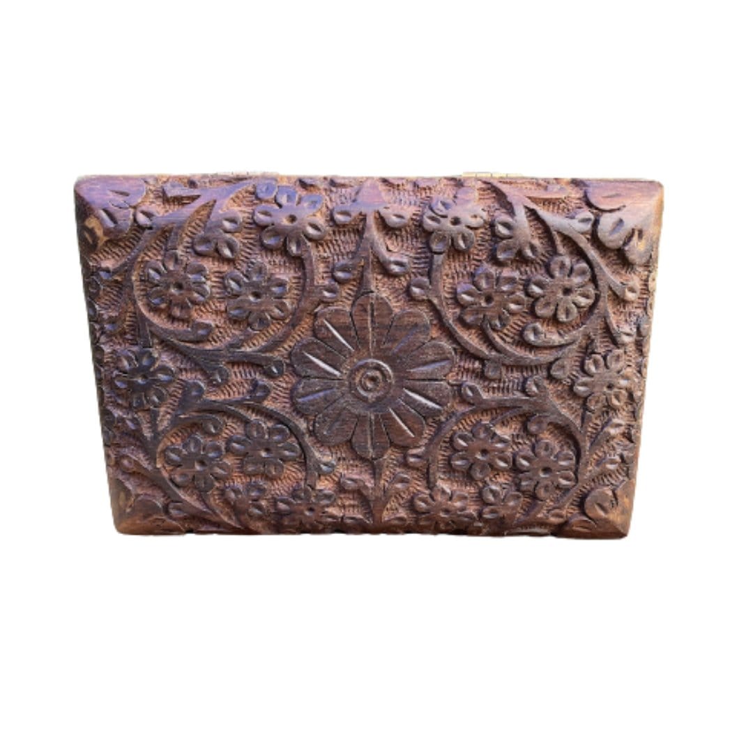 Flower Design Wooden Box 4x6" - a delightful blend of elegance and practicality that will elevate your card-carrying experience. Crafted with meticulous attention to detail, this hand-carved box features a stunning flower design that adds an enchanting touch to its overall charm.