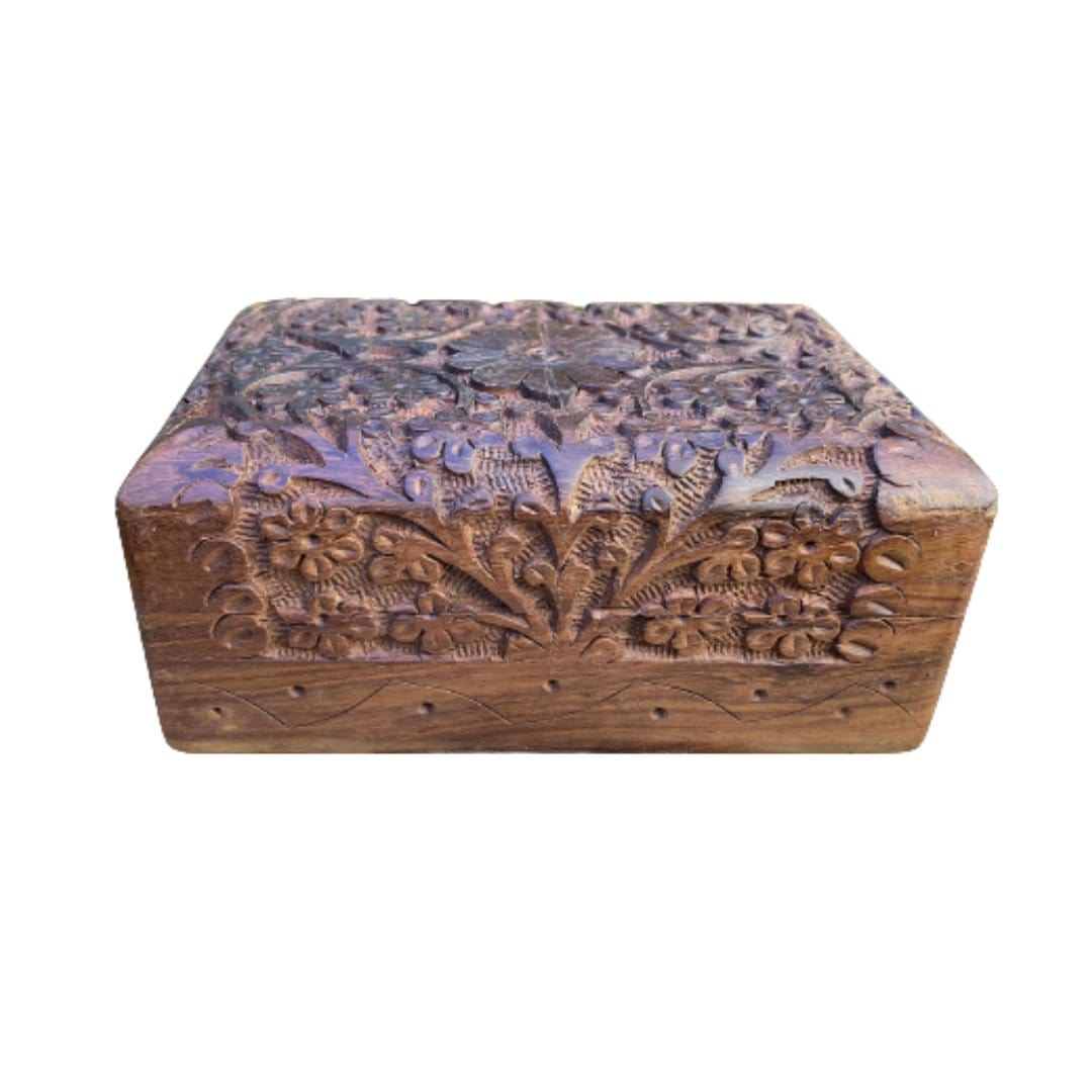 Flower Deep Carved Wood Box 4x6"