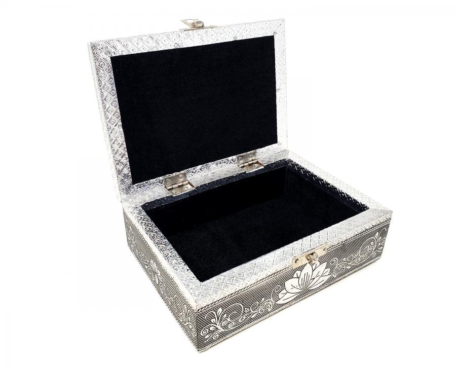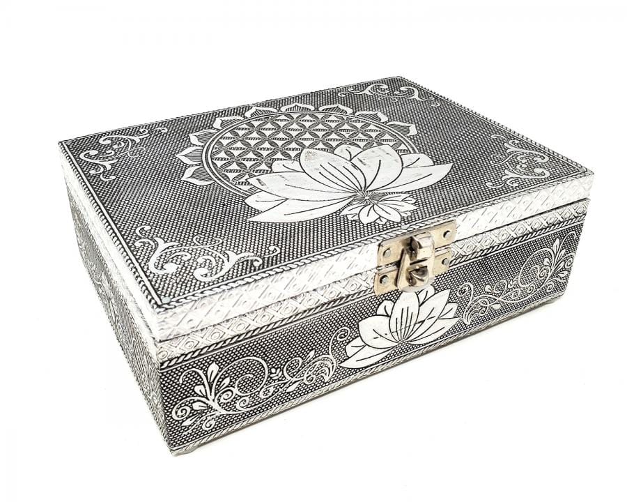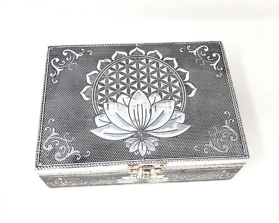 Lotus Carved Metal Wood Box 4.75 x 6.75"