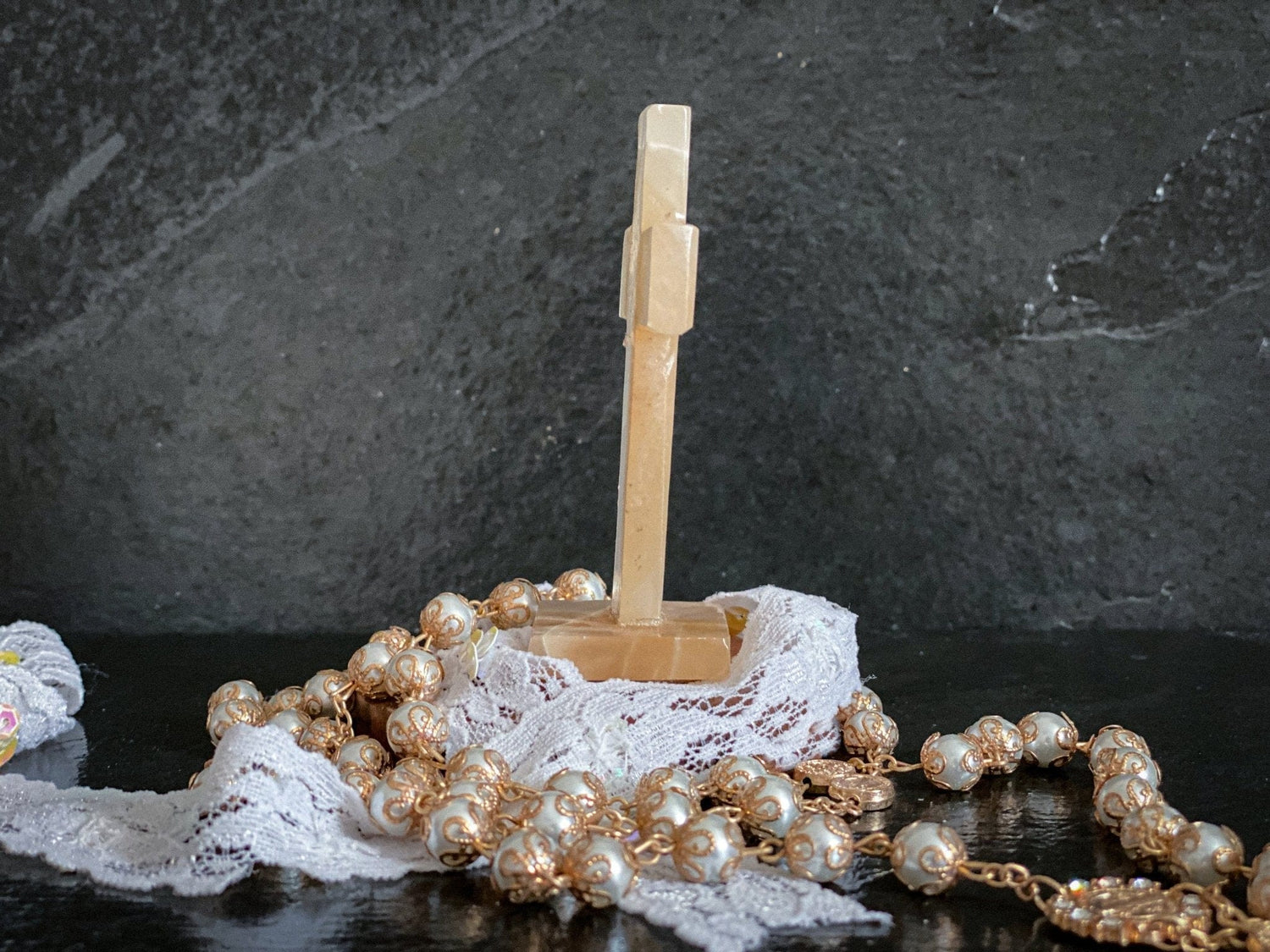Bring a little self-indulgence and elegance to your jewelry wardrobe with these gorgeous Calcite Cross earrings. Perfect for an elegant and sophisticated look, these earrings will be the perfect addition to your collection.
