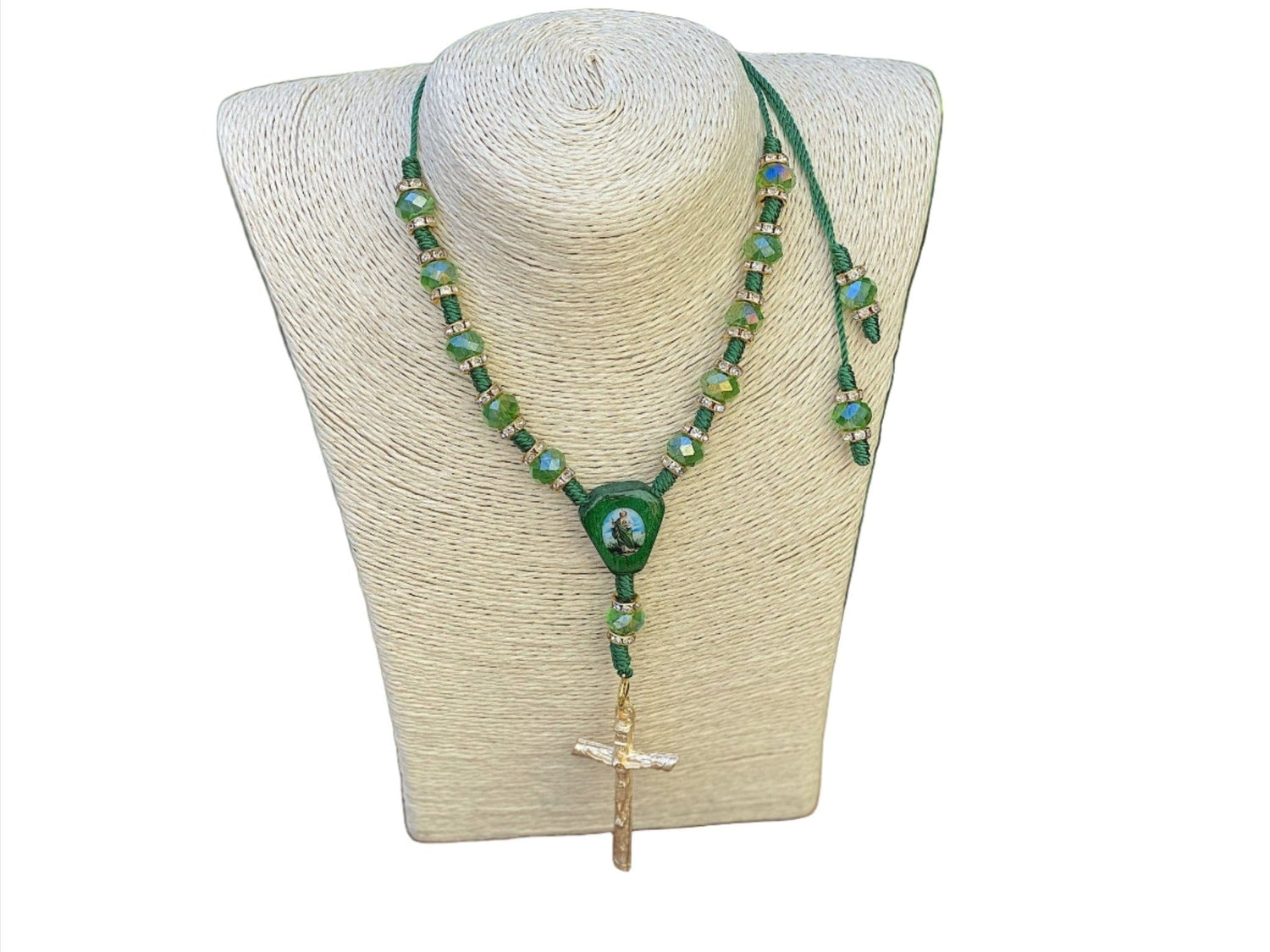 San Judas is a lucky charm for prosperity, health, and happiness. This gorgeous Rosary is handmade from Mexico it is made of nylon thread with Gold plated crucifix. The rosary was woven thread is designed to bring the wearer good fortune.