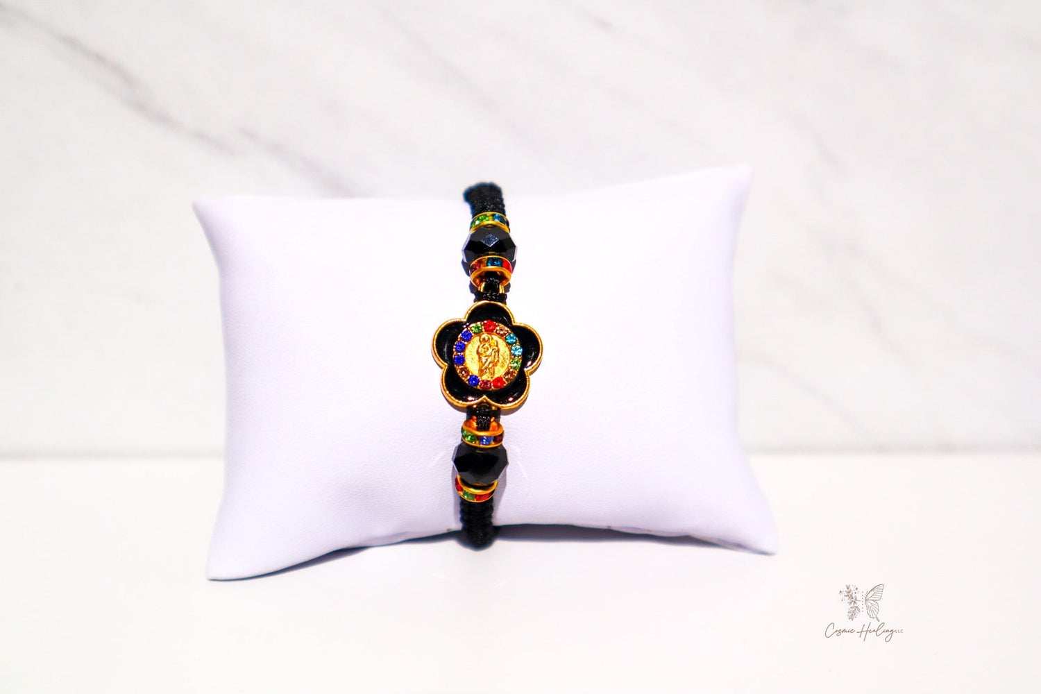 This San Judas is a bracelet that features the spirituality and beauty of flowers, with a gold San Judas medal at the center. A perfect accessory for those who want to bring love and protection with them in their daily lives. This bracelet is also a great gift for loved ones.