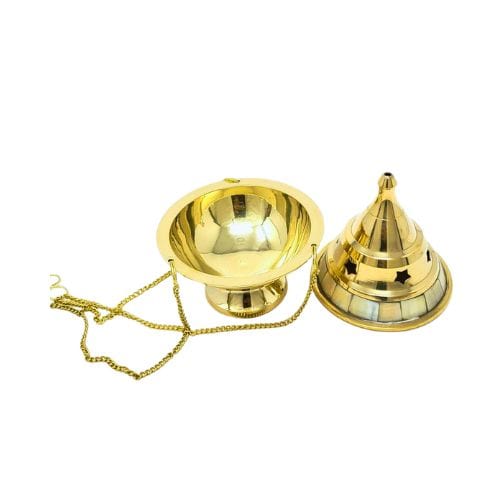 Quemador de Incienso Colgante de Latón con Incrustaciones de Nácar – 5"