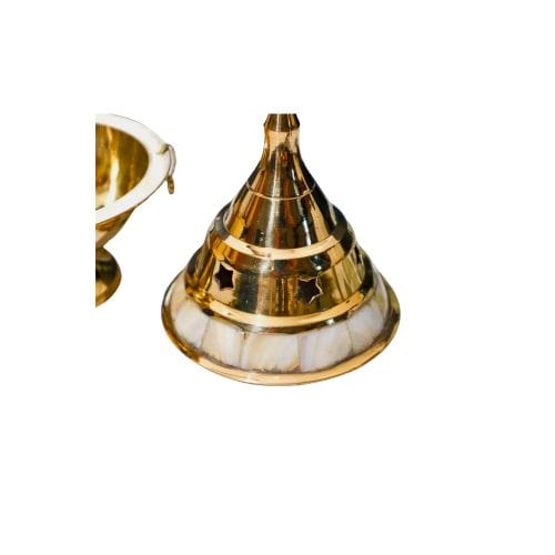 Star Cutouts Hanging Brass Incense Burner – 5" with Mother of Pearl Inlay