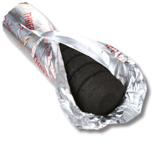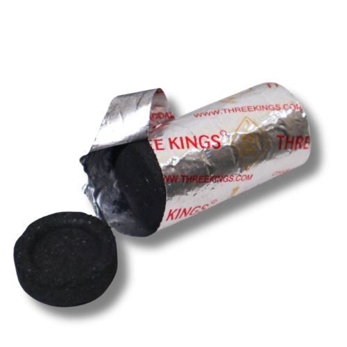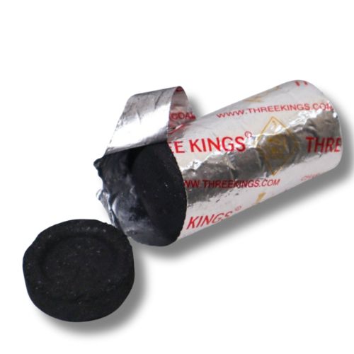 Three Kings’ Quick Light charcoal is disc shaped available in two sizes, measuring 40 mm in diameter. The tabs can be used for smoking shisha or for burning incense and ignite much quicker than other charcoal tabs on the market. This makes them highly convenient and easy to use.