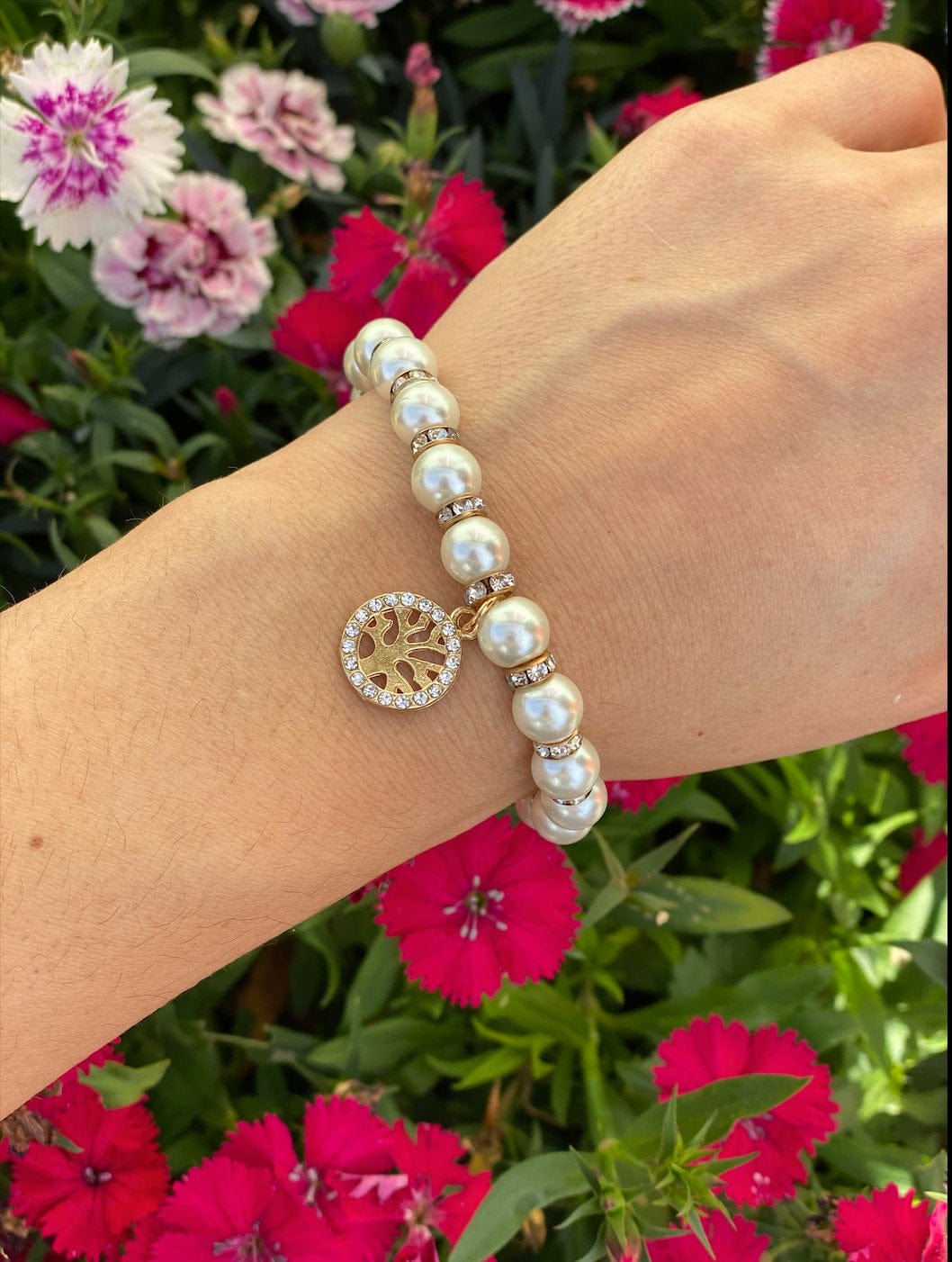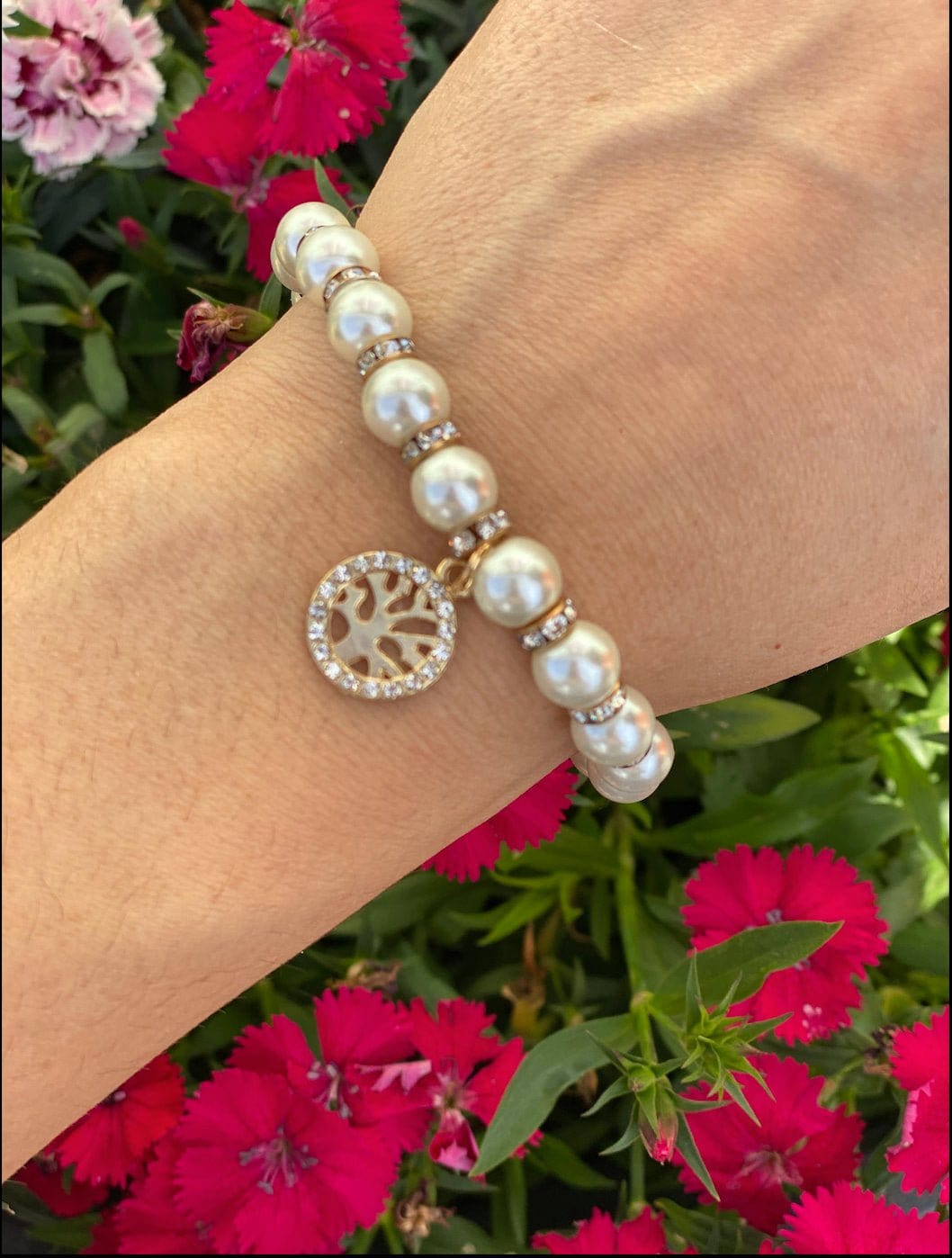 Tree of Life Pearl Bracelet with Rhinestones