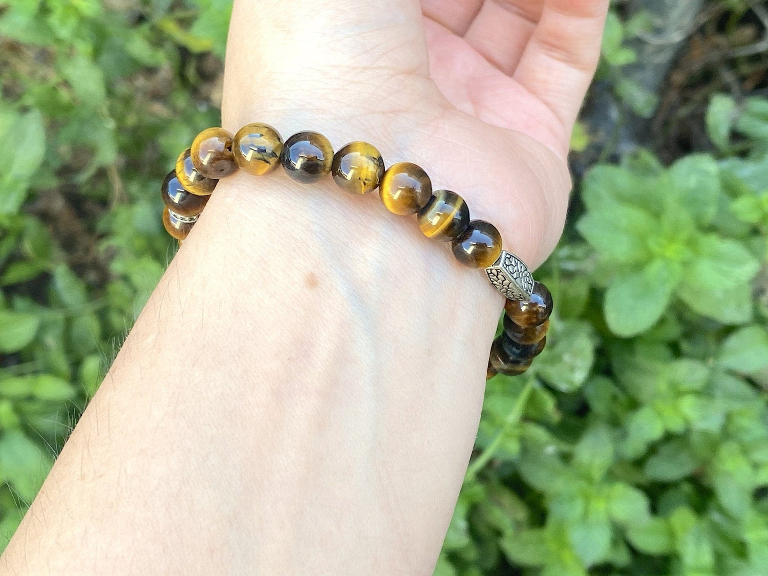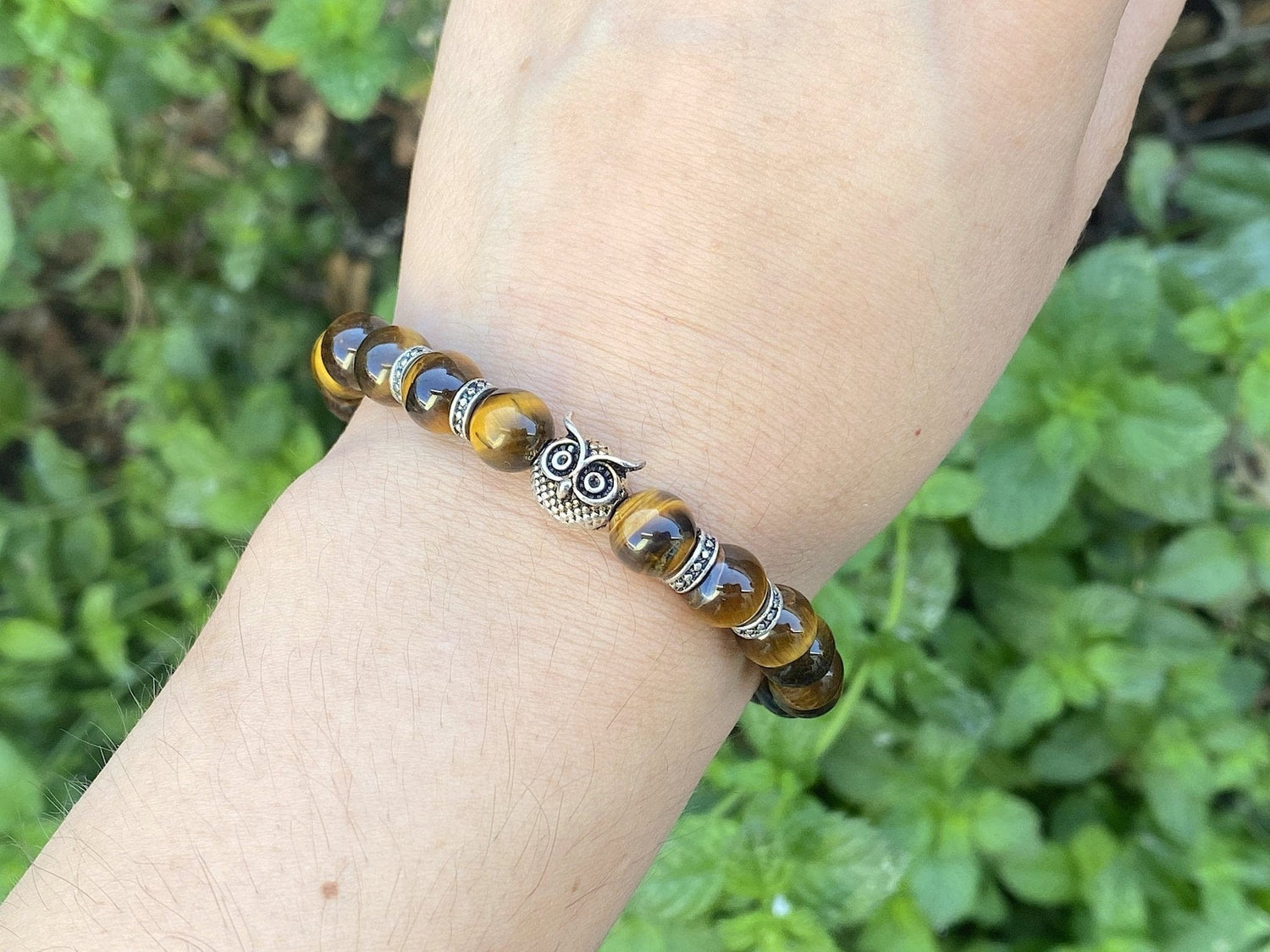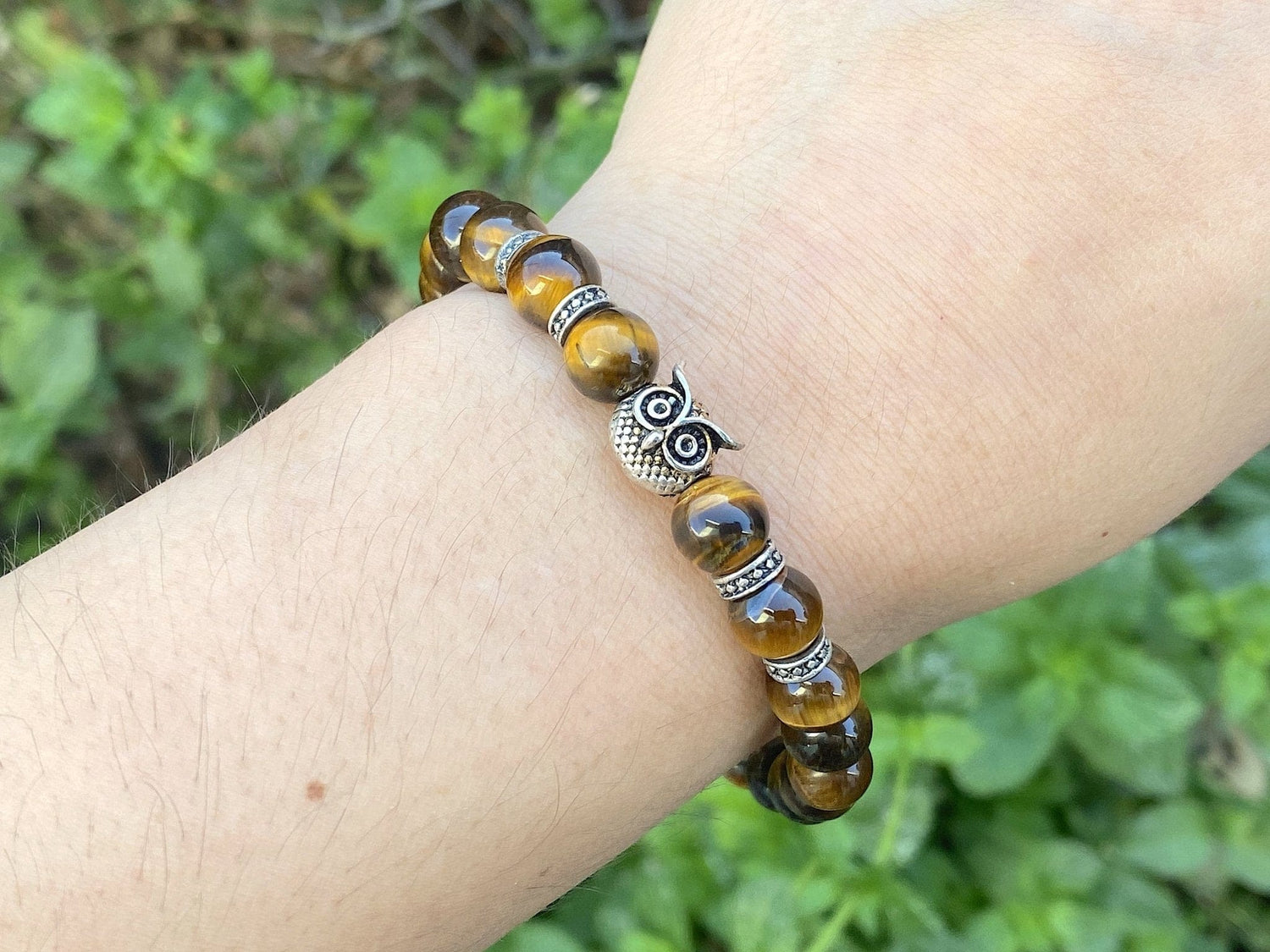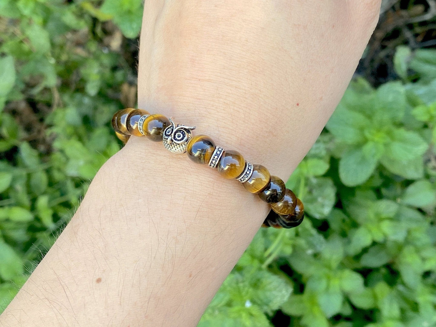Elevate your style with this stunning bracelet crafted from 8mm Tiger Eye beads, known for their captivating golden-brown shimmer. A silver owl bead adds a touch of wisdom and charm, making this piece a versatile accessory for any occasion. Handcrafted with a Touch of Magick, each bracelet is truly one-of-a-kind.
