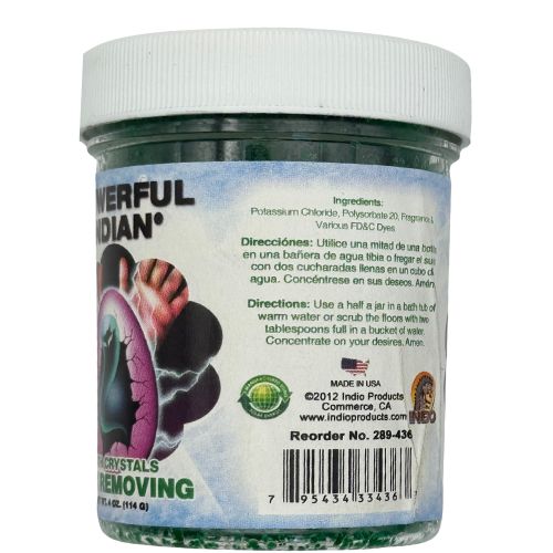 Indio Powerful Indian Jinx Removing Bath Crystals 4oz (Cristales Para Baño Quita Cenizo)