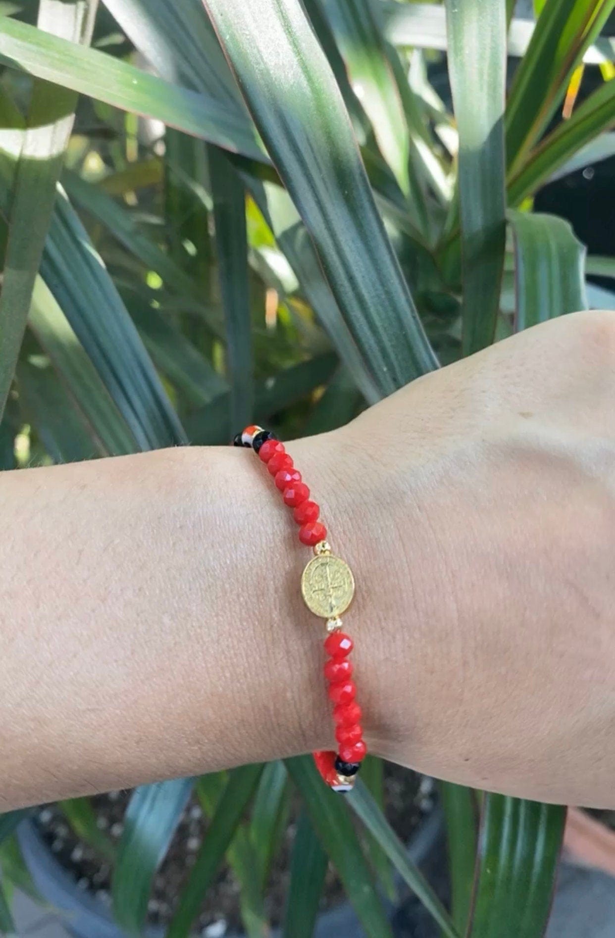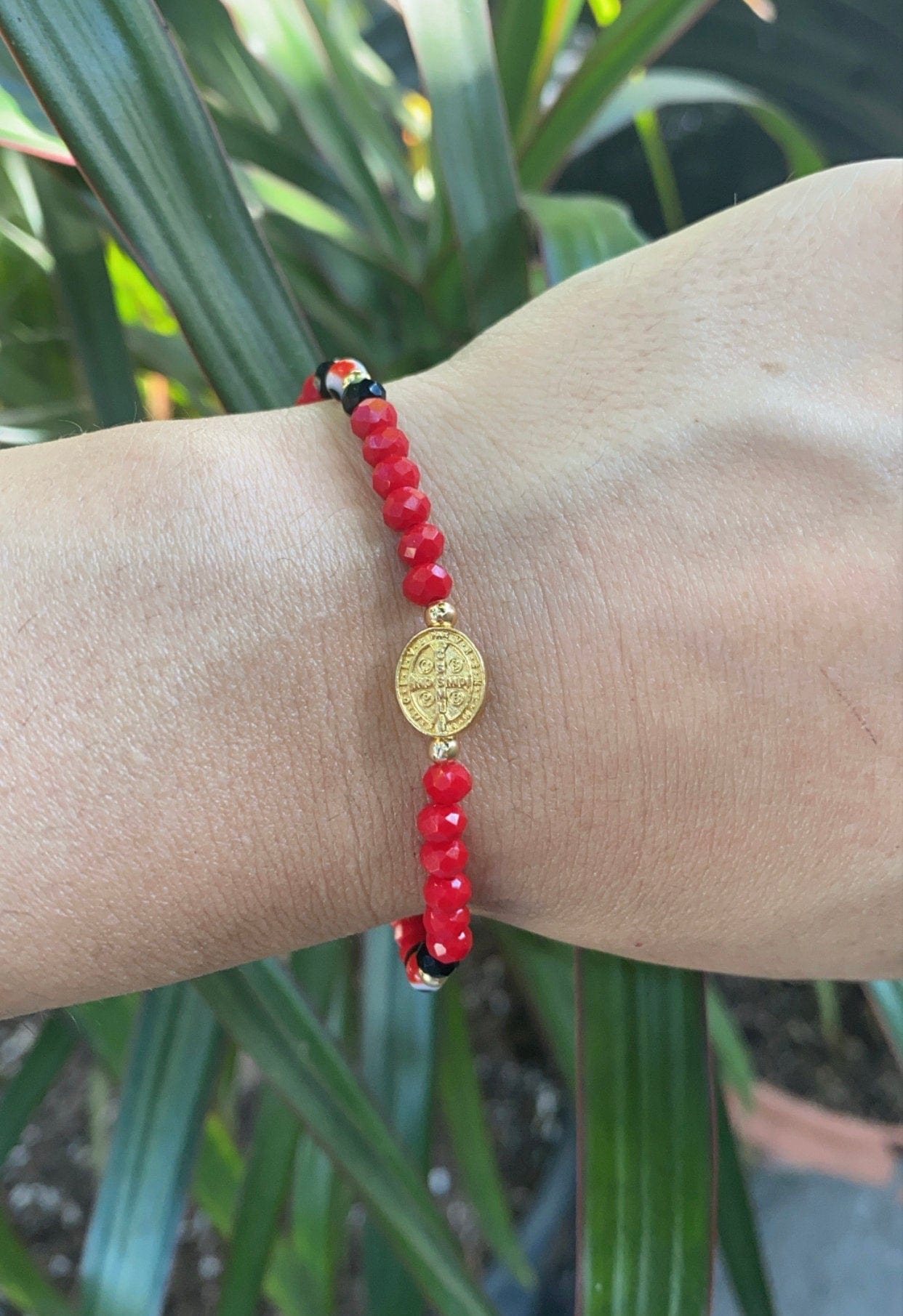 Red Evil Eye with Saint Benedict Medal Bracelet