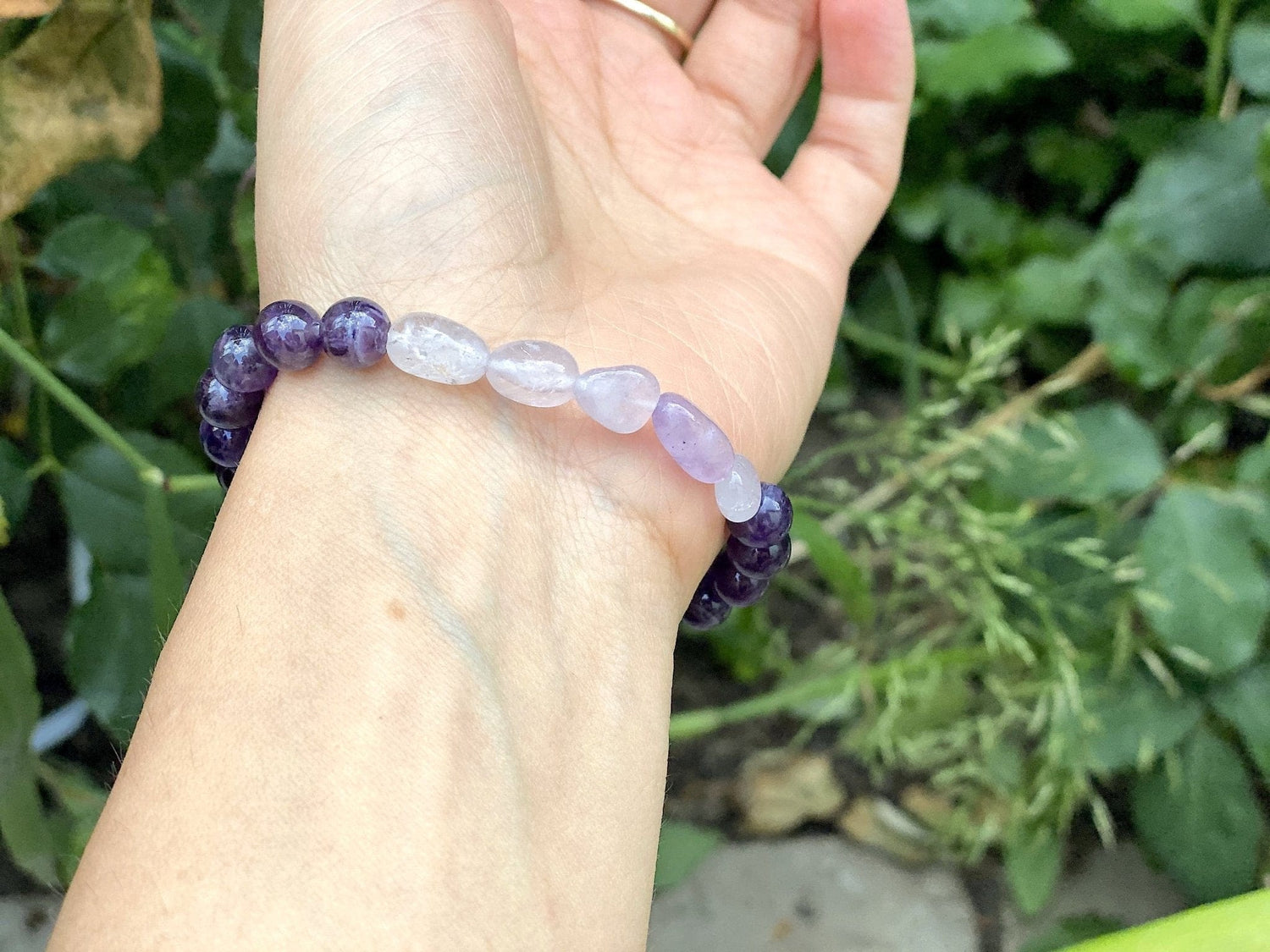 La amatista es una piedra poderosa y protectora. Protege la corona contra ataques psíquicos, transmutando la energía en amor y protegiendo al usuario de todo tipo de daño, incluido el estrés geopático o electromagnético y los malos deseos de los demás. La amatista es un tranquilizante natural, alivia el estrés y la tensión, calma la irritabilidad, equilibra los cambios de humor, disipa la ira, la rabia, el miedo y la ansiedad. Alivia la tristeza y el duelo, y disuelve la negatividad. La amatista activa la conciencia espiritual, abre la intuición y mejora las capacidades psíquicas. Tiene fuertes poderes curativos y limpiadores. La amatista fomenta la sobriedad y tiene un efecto aleccionador sobre el exceso de alcohol, drogas u otras adicciones. Calma y estimula la mente, ayudándote a concentrarte más, mejorando la memoria y la motivación. La amatista ayuda a recordar y comprender los sueños. Alivia el insomnio. Fomenta el desinterés y la sabiduría espiritual.