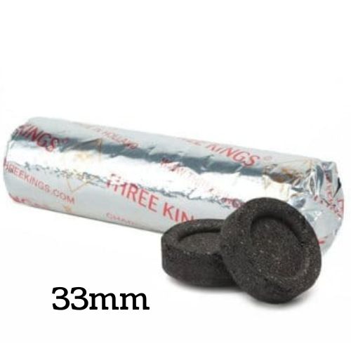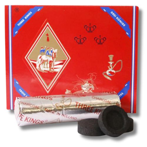 El carbón Quick Light de Three Kings tiene forma de disco y está disponible en dos tamaños, de 33 mm o 40 mm de diámetro. Las pastillas se pueden utilizar para fumar shisha o para quemar incienso y se encienden mucho más rápido que otras pastillas de carbón del mercado. Esto las hace muy cómodas y fáciles de usar.