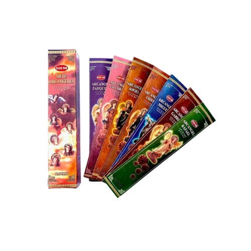 Las barritas de incienso HEM 7 Arcángel son siete fragancias diferentes en cada caja (cinco barritas de una fragancia para cada Arcángel). Un juego especial de incienso inspirado en los poderes celestiales de los Siete Arcángeles. Se utiliza para pedirles ayuda y guía en todas las áreas de la vida. Todos los Arcángeles son portadores del amor y la sabiduría divinos, y cada uno tiene un área de enfoque especial.