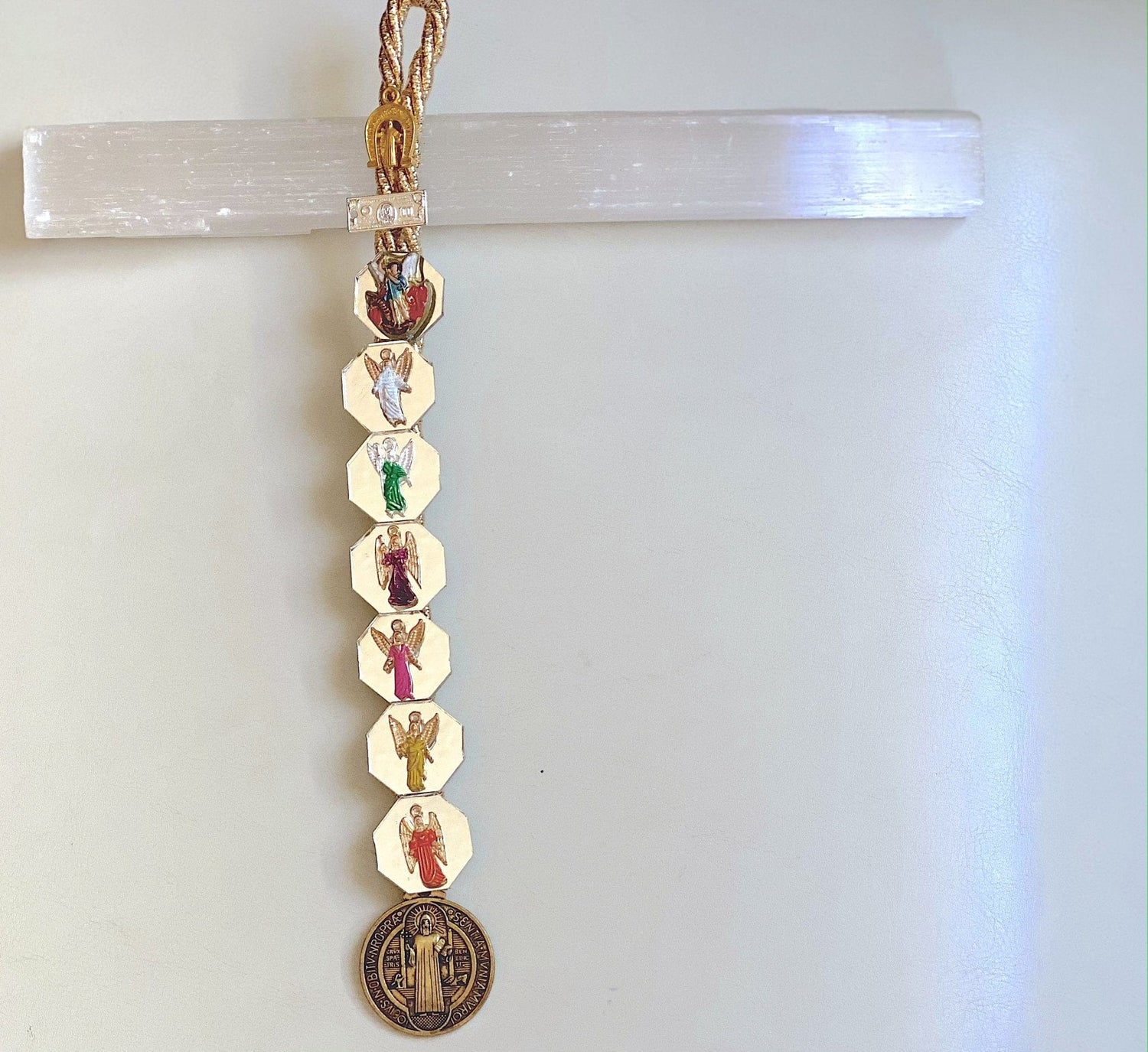 Nuestra Protección Arcángel es una forma eficaz de garantizar que sus seres queridos estén a salvo de todo daño. Es un hermoso collar hecho a mano que presenta un pequeño dije de ángel en un espejo en forma hexagonal para recordarte que siempre están cerca.