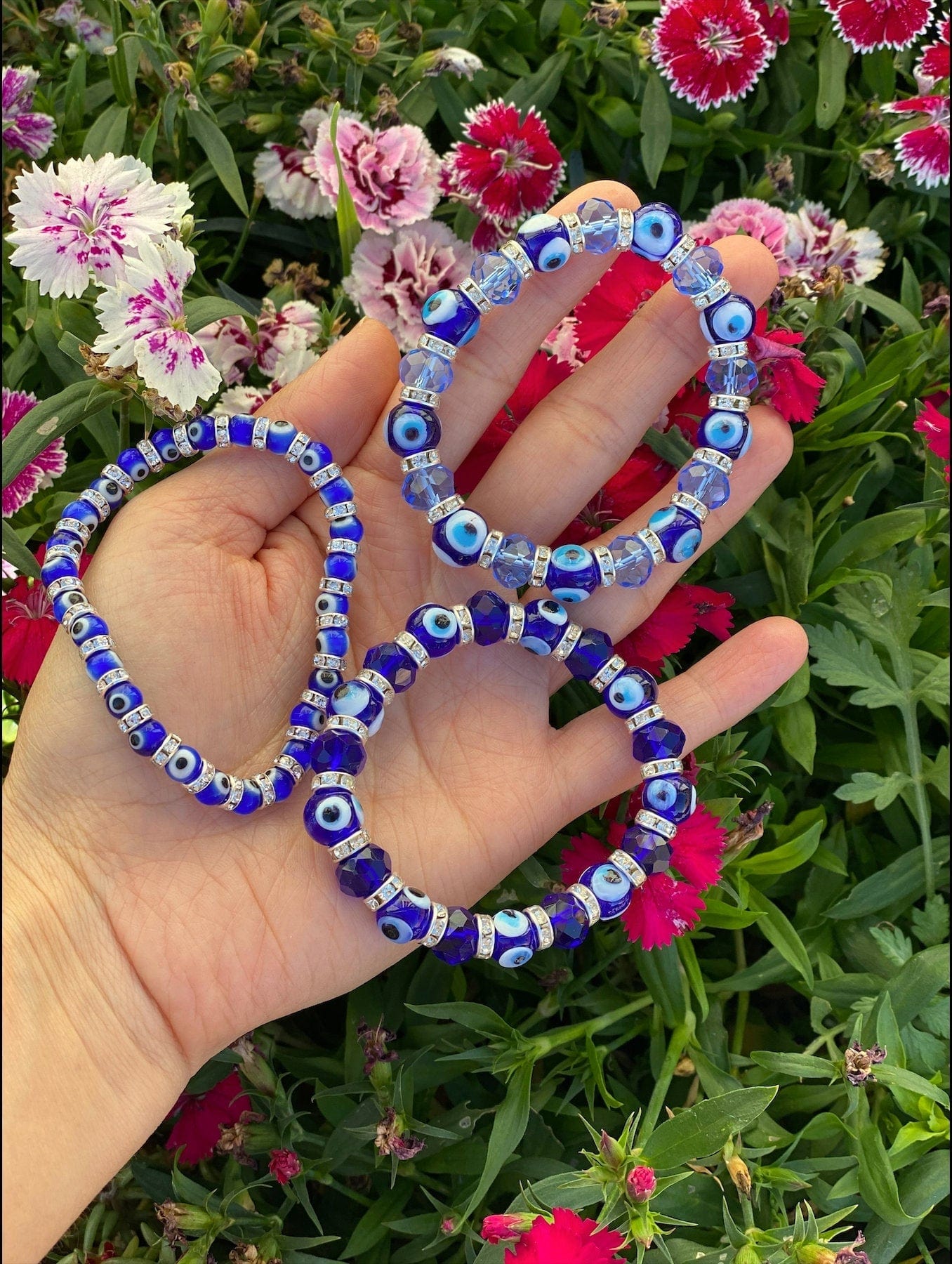 ¡Necesitas protección! Estas pulseras contra el mal de ojo son perfectas para ti, con su pulsera con dijes de mal de ojo azul intenso compuesta de cuentas de vidrio y diamantes de imitación de 6 mm en una corbata elástica. Se cree que ayudan a protegerse del mal de ojo, brindan protección contra daños y mantienen alejadas a las personas negativas. ¡Con estos, tienes la garantía de mantenerte seguro pase lo que pase!