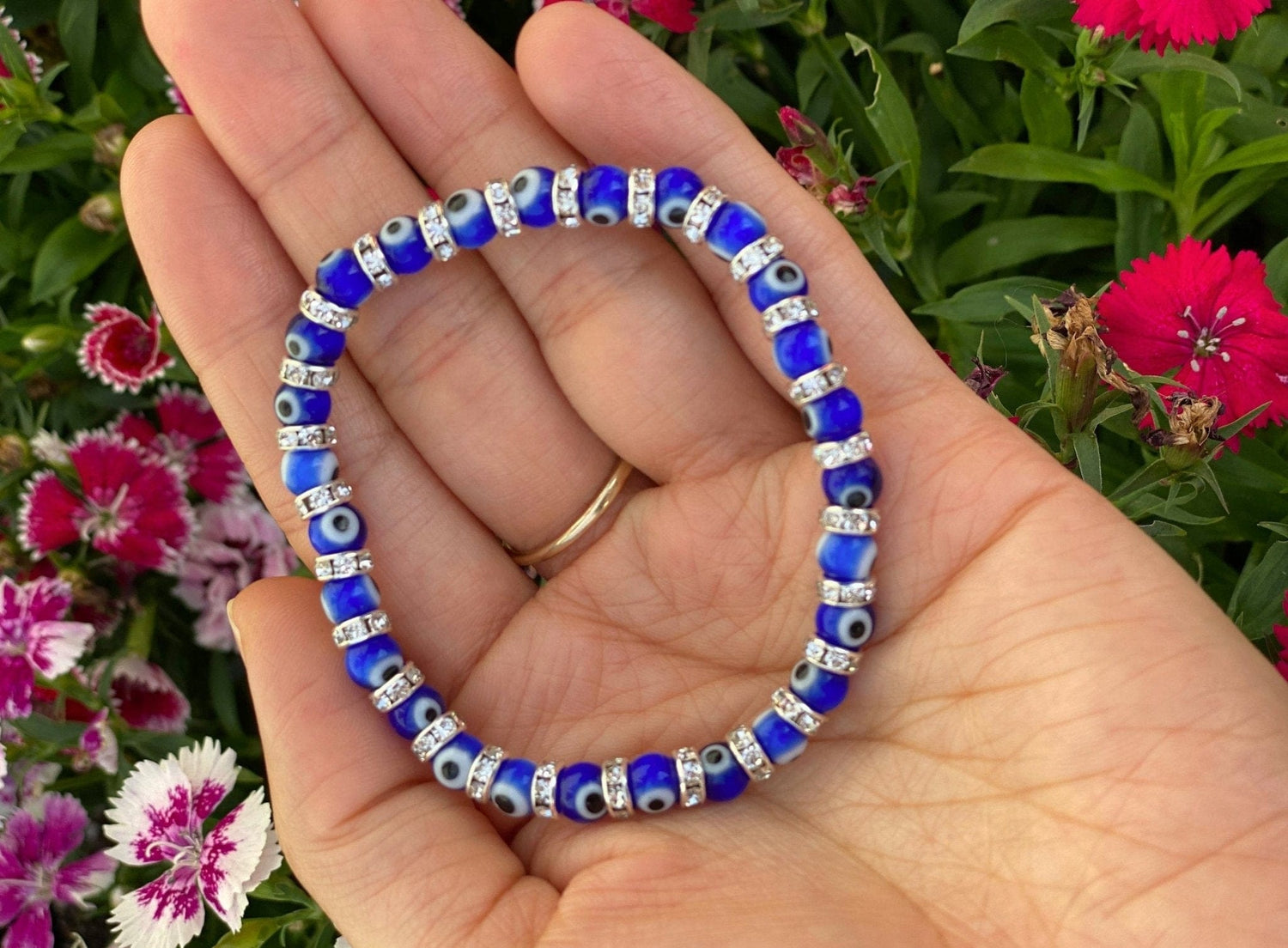 El mal de ojo es un símbolo que se ve en todo el mundo. Se dice que protege del mal de ojo, la energía negativa y la mala suerte. ¿Qué mejor manera de lograrlo que con esta preciosa pulsera? Úselo en su muñeca izquierda para recibir protección o en su derecha para repeler la negatividad.