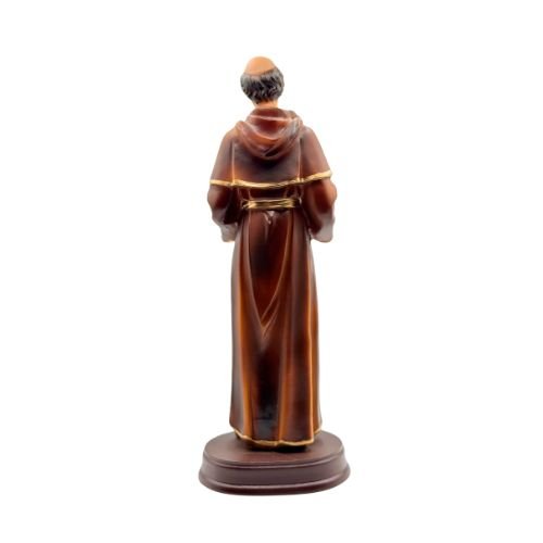 - Franciscan Robes & Rope Belt: Saint Anthony is depicted wearing the traditional habit robes of the Franciscan order, with a rosary hanging from his belt, symbolizing his devotion.