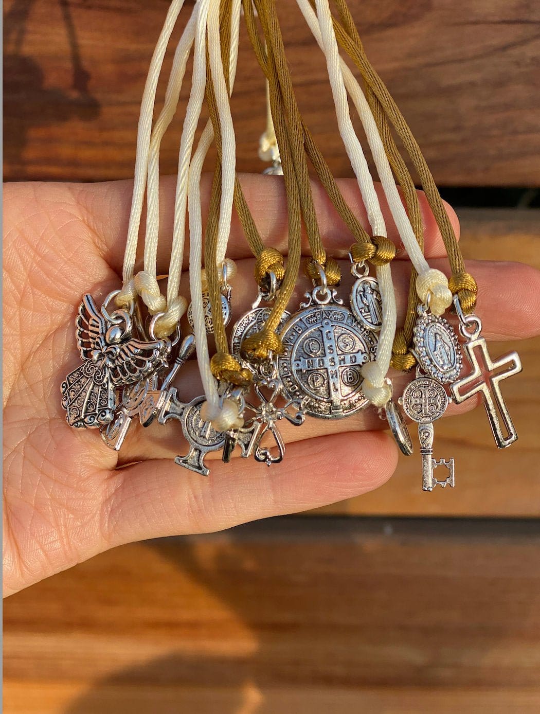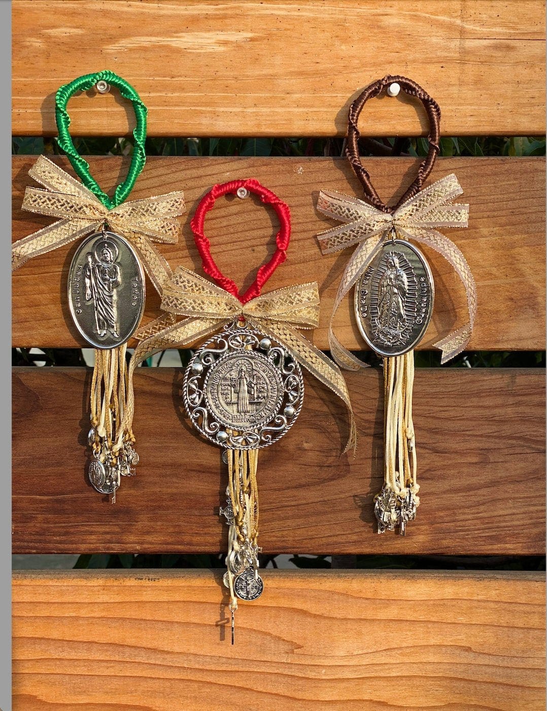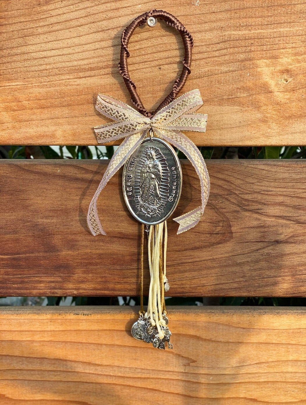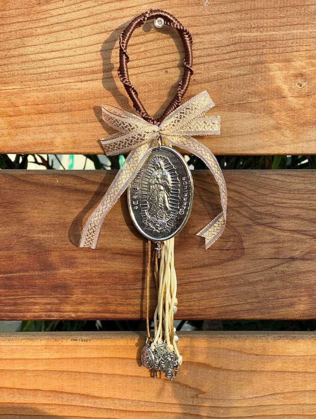 Deze Virgen-medaille is een weergave van een van de meest gevierde religieuze iconen ter wereld. Door deze medaille in uw ruimte te hangen, roept u bescherming en veiligheid op. Deze zilveren Virgen de Guadalupe-medaille met religieuze bedels is de perfecte manier om ervoor te zorgen dat uw geliefde toegang heeft tot een belangrijke heilige. De medaille is verzilverd en heeft een bruin koord met verschillende religieuze bedels en talismannen.