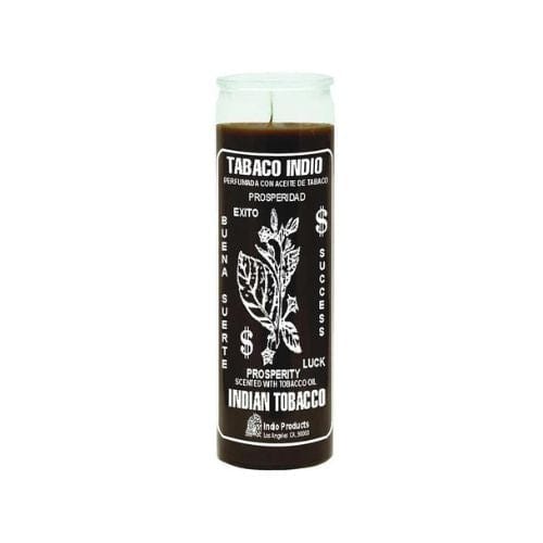 Indian Tobacco (Tobaco Indio) 7 Day Scented Candle is burned to attract happiness and change bad luck to good with the help of Indian spirits. This 7 day glass Tobacco scented candle has a rich, warm earthy like aroma.
